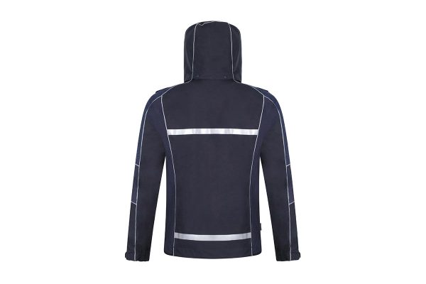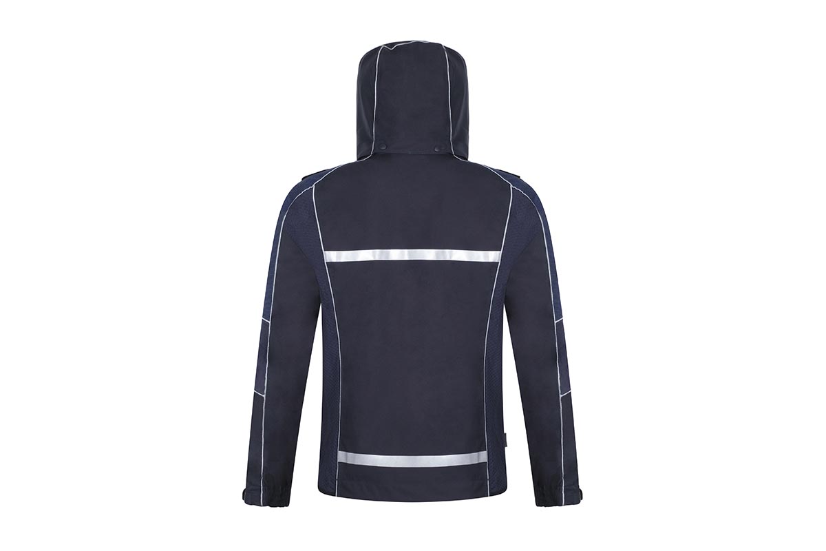 - Inserti in tessuto di rinforzo rifrangente applicati su collo, spalle e maniche