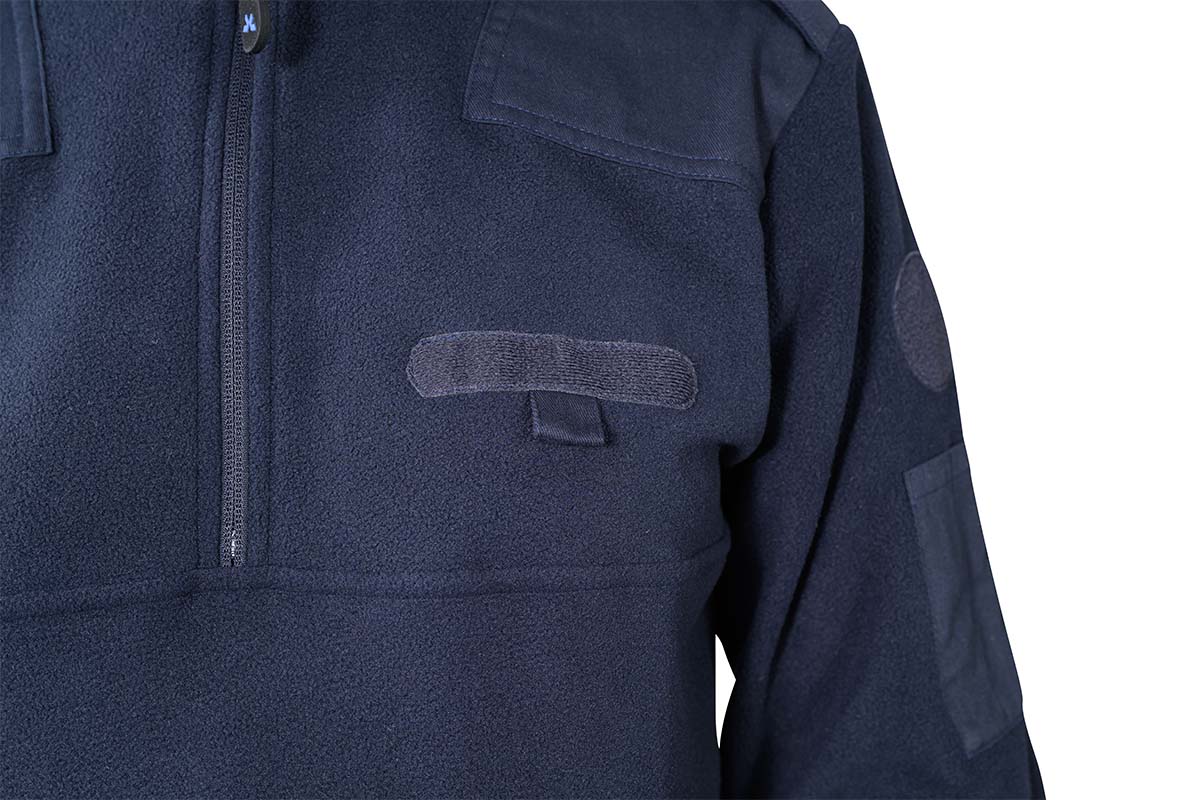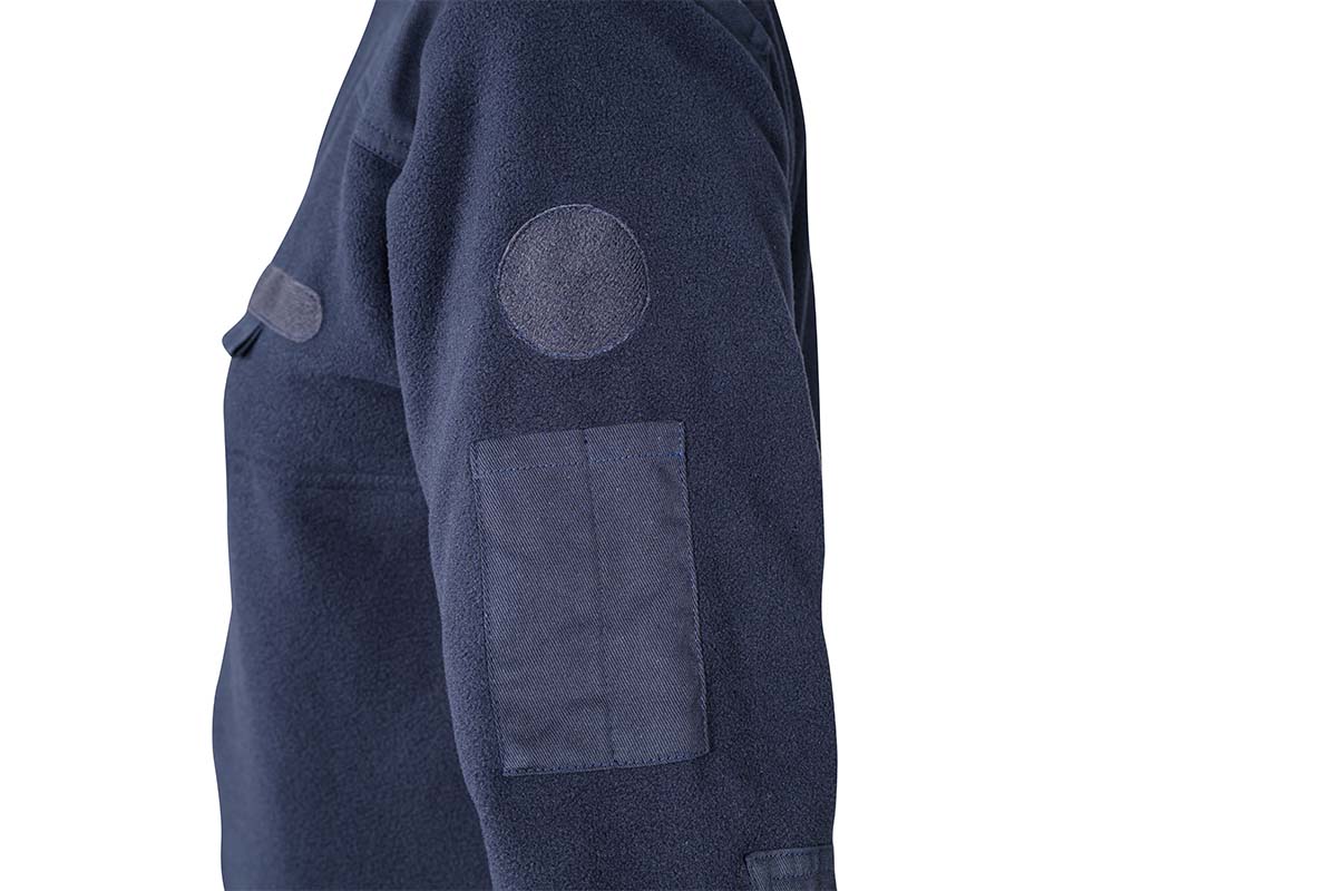 - Velcro asola in tono posto sul petto sinistro per l’applicazione della scritta, tondo sul braccio sinistro per l’applicazione del fregio regionale ed a forma di scudetto sul braccio destro per l’applicazione del fregio comunale di appartenenza